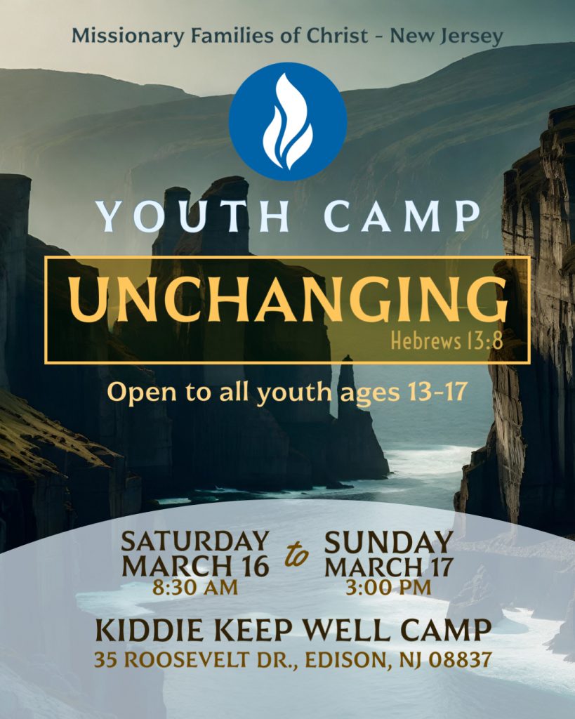 • Check. Payments by check must be made payable to “Missionary Families of Christ New Jersey” and may either be paid at the venue on the first day of youth camp.